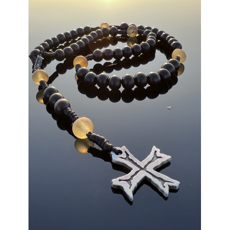 Różaniec Świętego Szarbela z hebanu i bursztynu — modlitwa, która prowadzi do pokoju.