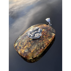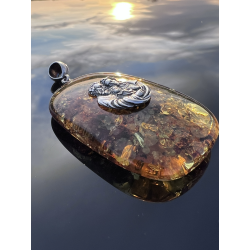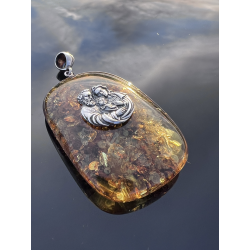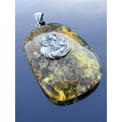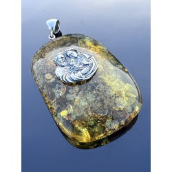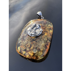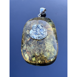 Medalion z bursztynu i srebra — Święta Rodzina